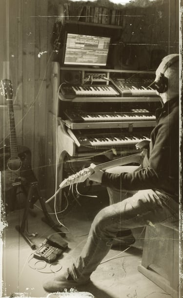 Nací en Torrelavega en el año 1963, y desde muy pequeño supe que respiraba música. Mi voz facilitó que de niño comenzara como cantante y cuando en la adolescencia me cambió elegí a una guitarra como compañera de viaje. Siendo totalmente autodidacta he experimentado que todo es posible, todo y más. Atravesé el tiempo como guitarrista en varios grupos pero, al final, siempre acababa improvisando solo, sacando melodías extrañas de un misterioso lugar.